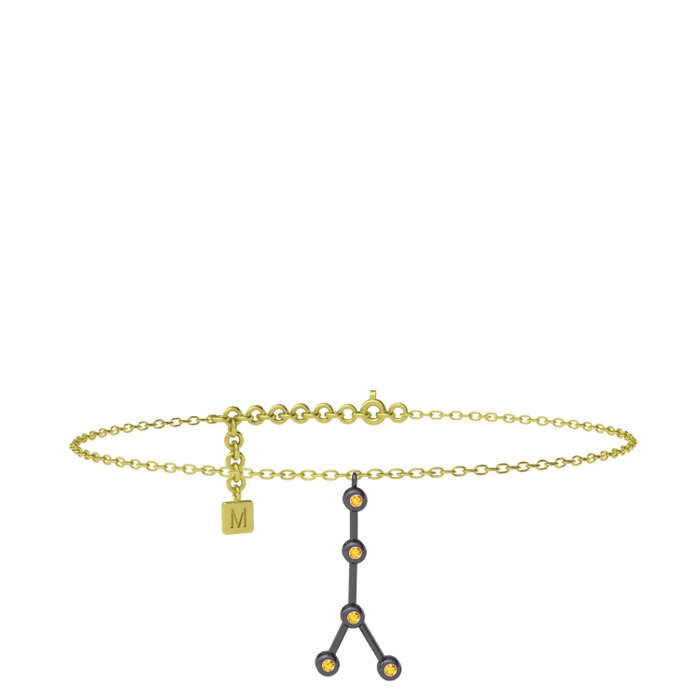 Sitrin 925 ayar siyah rodyum kaplama gümüş bilezik (20 cm altın rolo zincir)
