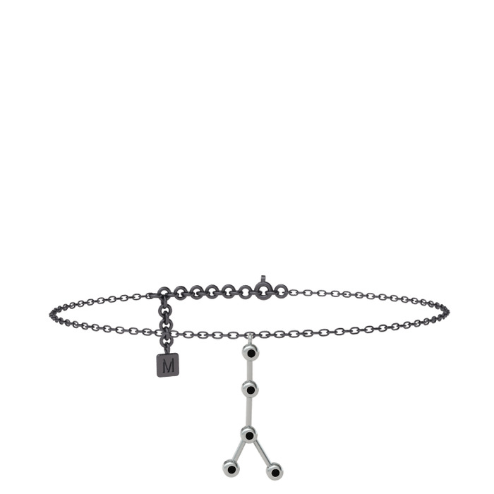 Siyah zirkon 8 ayar beyaz altın bilezik (20 cm gümüş rolo zincir)