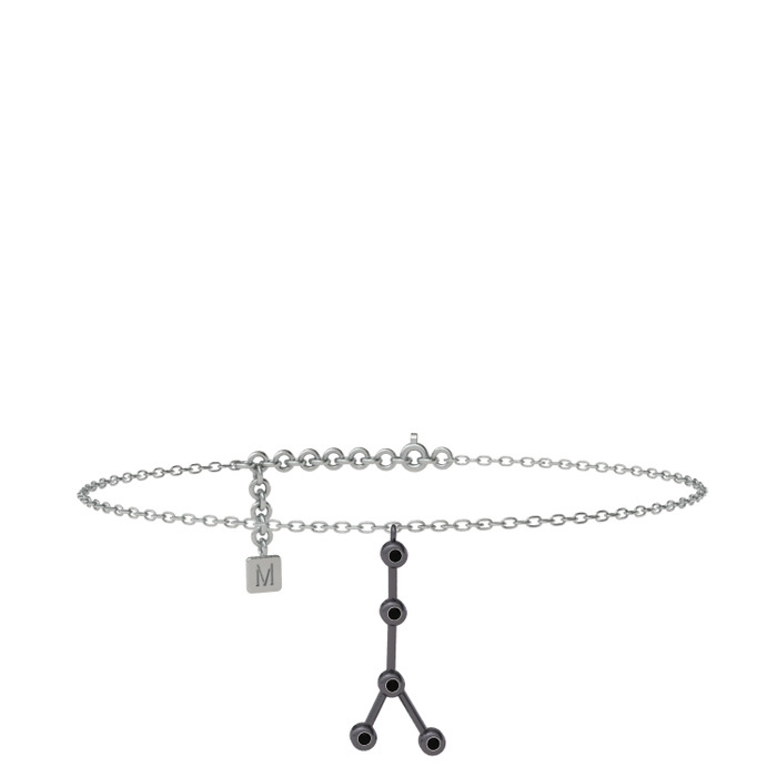 Siyah zirkon 925 ayar siyah rodyum kaplama gümüş bilezik (20 cm beyaz altın rolo zincir)