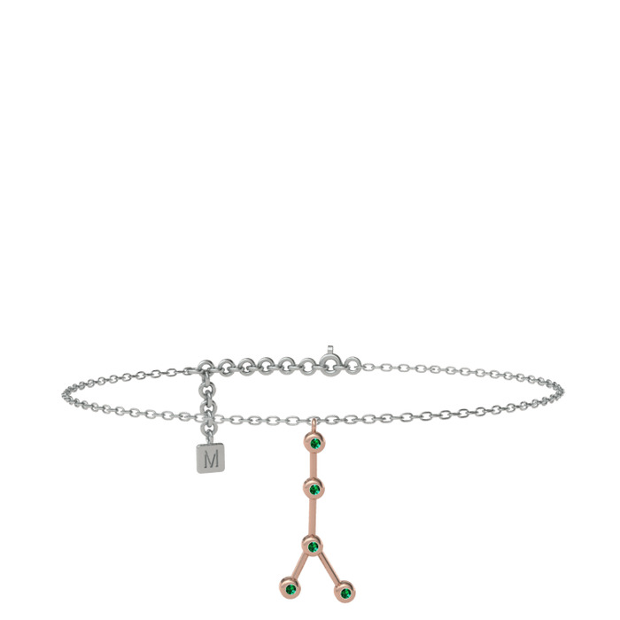 Yeşil kuvars 18 ayar rose altın bilezik (20 cm beyaz altın rolo zincir)