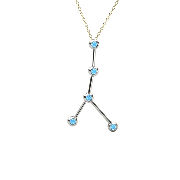 Akuamarin 18 ayar beyaz altın kolye (40 cm gümüş rolo zincir)