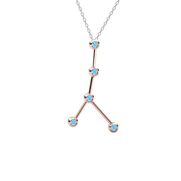 Akuamarin 925 ayar rose altın kaplama gümüş kolye (40 cm beyaz altın rolo zincir)