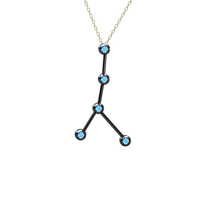 Akuamarin 925 ayar siyah rodyum kaplama gümüş kolye (40 cm altın rolo zincir)
