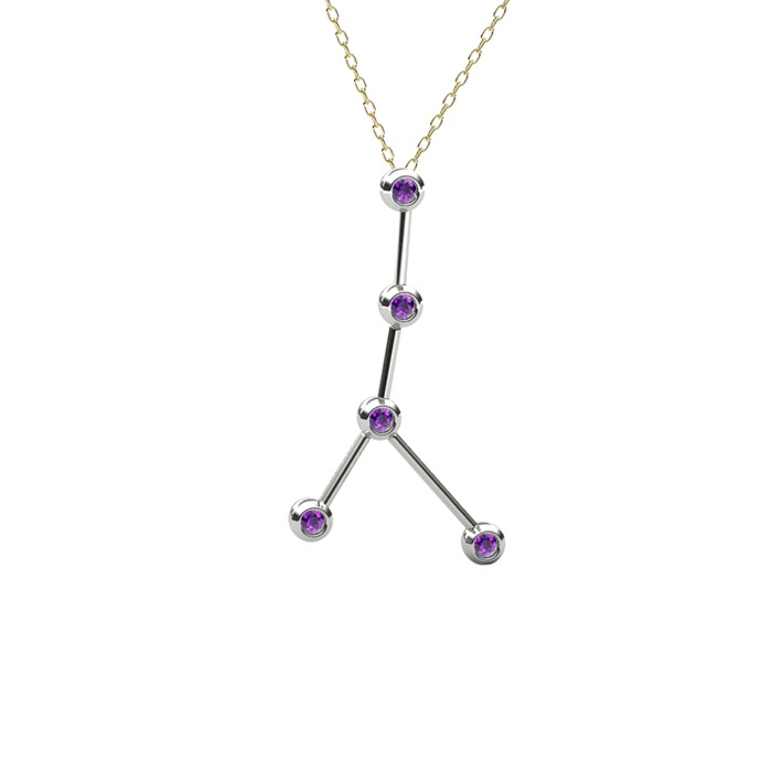 Ametist 14 ayar beyaz altın kolye (40 cm gümüş rolo zincir)
