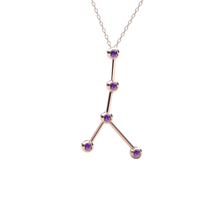Ametist 18 ayar rose altın kolye (40 cm gümüş rolo zincir)