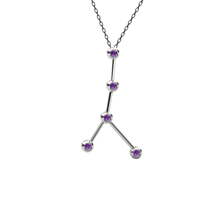 Ametist 8 ayar beyaz altın kolye (40 cm gümüş rolo zincir)