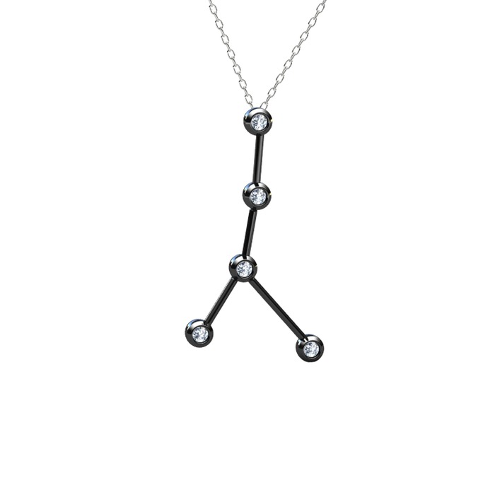 Beyaz zirkon 925 ayar siyah rodyum kaplama gümüş kolye (40 cm beyaz altın rolo zincir)
