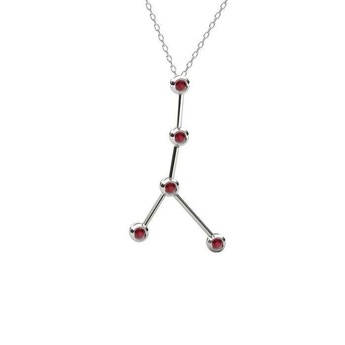 Kök yakut 14 ayar beyaz altın kolye (40 cm gümüş rolo zincir)