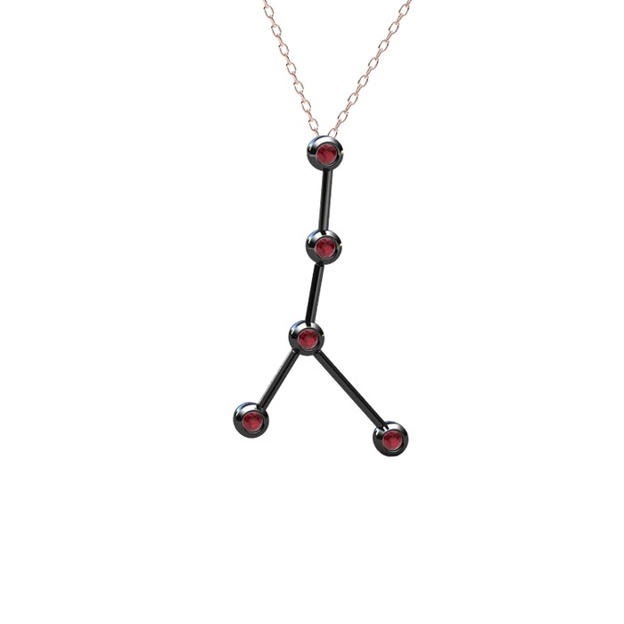 Kök yakut 925 ayar siyah rodyum kaplama gümüş kolye (40 cm rose altın rolo zincir)