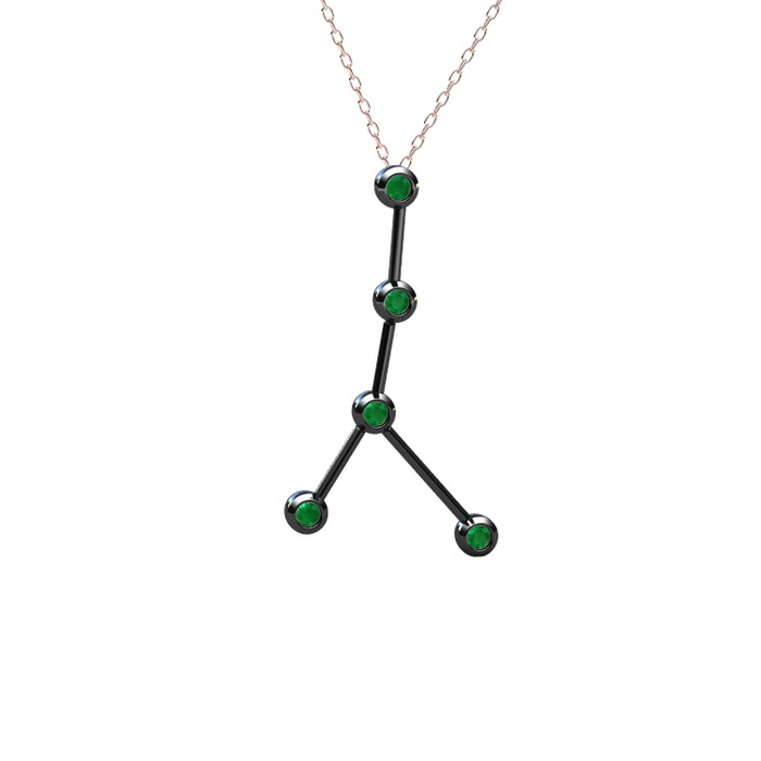 Kök zümrüt 925 ayar siyah rodyum kaplama gümüş kolye (40 cm rose altın rolo zincir)
