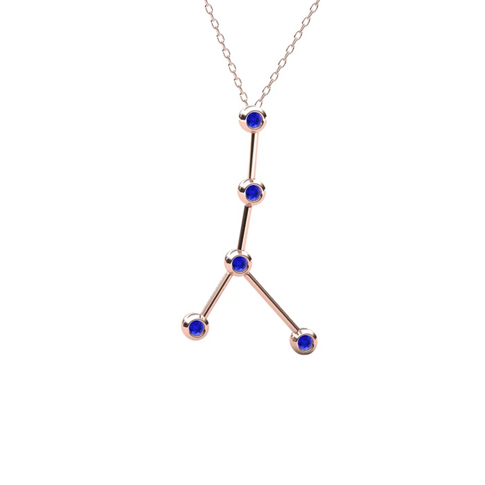 Lab safir 8 ayar rose altın kolye (40 cm rose altın rolo zincir)