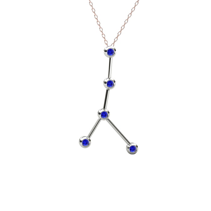 Lab safir 925 ayar gümüş kolye (40 cm rose altın rolo zincir)