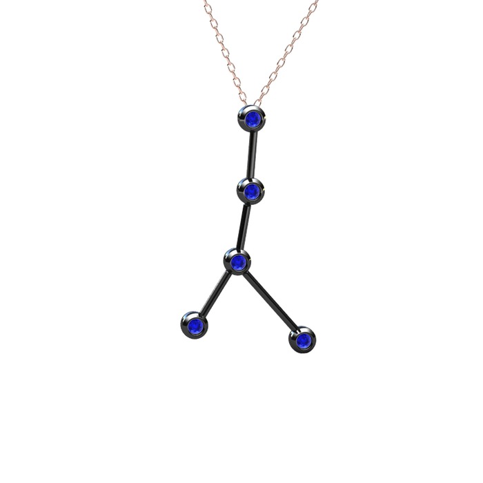 Lab safir 925 ayar siyah rodyum kaplama gümüş kolye (40 cm rose altın rolo zincir)