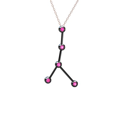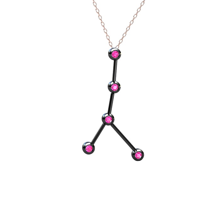 Pembe kuvars 925 ayar siyah rodyum kaplama gümüş kolye (40 cm gümüş rolo zincir)