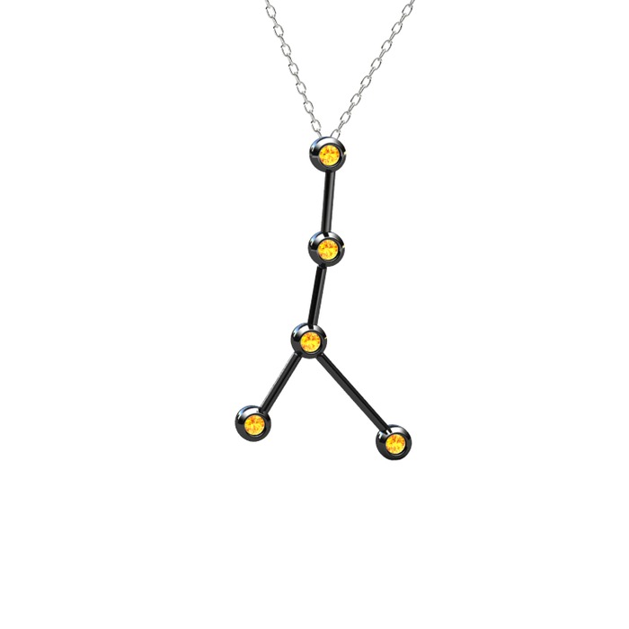 Sitrin 925 ayar siyah rodyum kaplama gümüş kolye (40 cm beyaz altın rolo zincir)