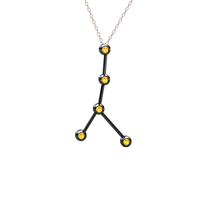 Sitrin 925 ayar siyah rodyum kaplama gümüş kolye (40 cm rose altın rolo zincir)