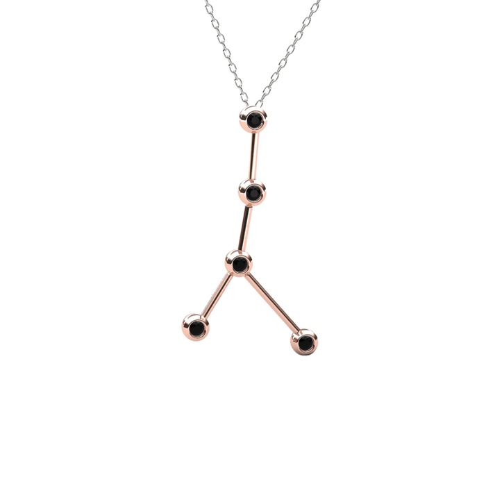 Siyah zirkon 14 ayar rose altın kolye (40 cm gümüş rolo zincir)