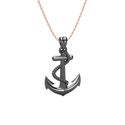 925 ayar siyah rodyum kaplama gümüş kolye (110 cm rose altın rolo zincir)