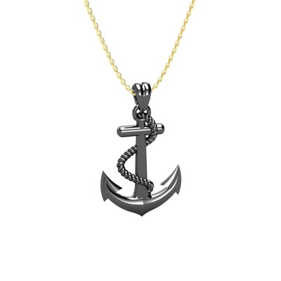 925 ayar siyah rodyum kaplama gümüş kolye (60 cm altın rolo zincir)