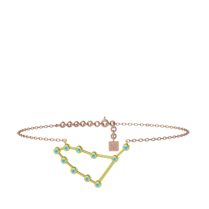 Akuamarin 8 ayar altın bilezik (20 cm rose altın rolo zincir)