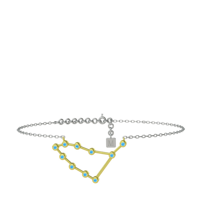Akuamarin 925 ayar altın kaplama gümüş bilezik (20 cm beyaz altın rolo zincir)