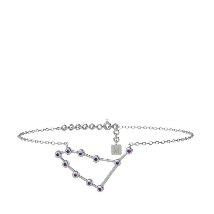 Ametist 925 ayar gümüş bilezik (20 cm beyaz altın rolo zincir)