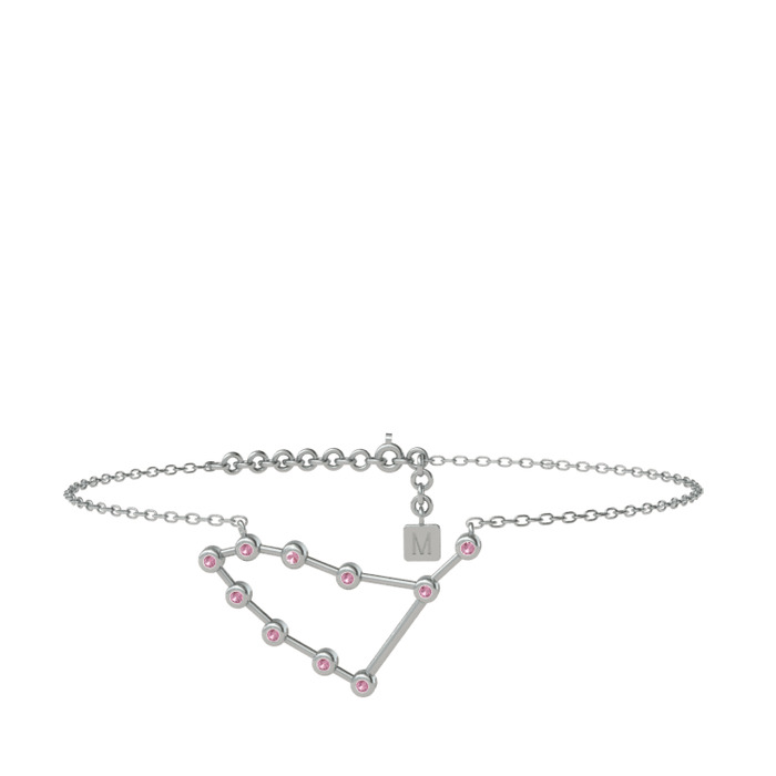 Pembe kuvars 14 ayar beyaz altın bilezik (20 cm beyaz altın rolo zincir)