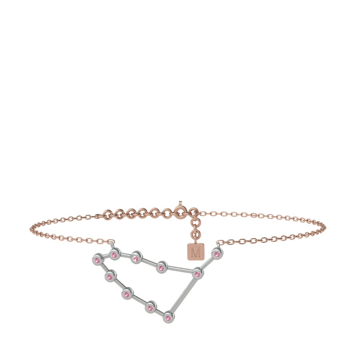 Pembe kuvars 8 ayar beyaz altın bilezik (20 cm gümüş rolo zincir)