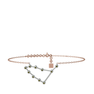 Peridot 18 ayar beyaz altın bilezik (20 cm rose altın rolo zincir)