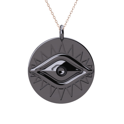 925 ayar siyah rodyum kaplama gümüş kolye (40 cm rose altın rolo zincir)