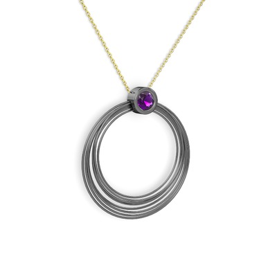 Ametist 925 ayar siyah rodyum kaplama gümüş kolye (40 cm altın rolo zincir)