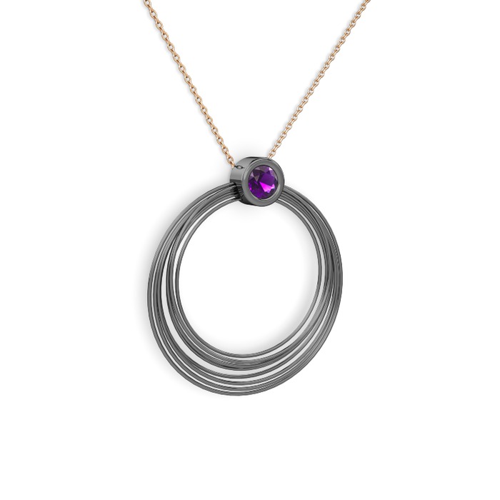 Ametist 925 ayar siyah rodyum kaplama gümüş kolye (40 cm rose altın rolo zincir)