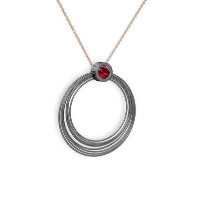 Garnet 925 ayar siyah rodyum kaplama gümüş kolye (40 cm rose altın rolo zincir)