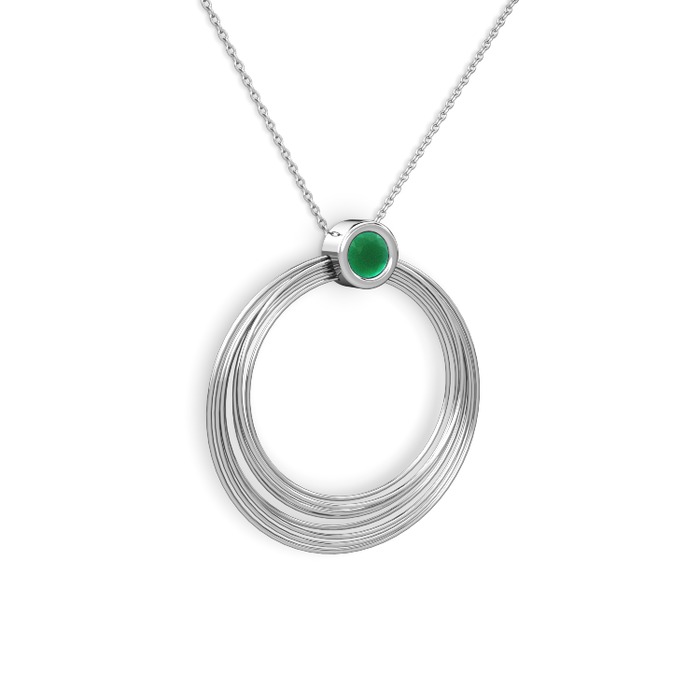 Kök zümrüt 925 ayar gümüş kolye (40 cm beyaz altın rolo zincir)