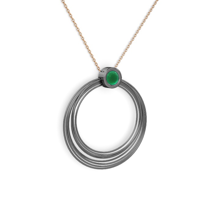 Kök zümrüt 925 ayar siyah rodyum kaplama gümüş kolye (40 cm rose altın rolo zincir)