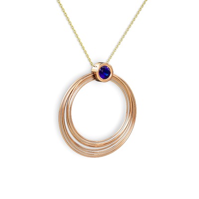 Lab safir 14 ayar rose altın kolye (40 cm altın rolo zincir)