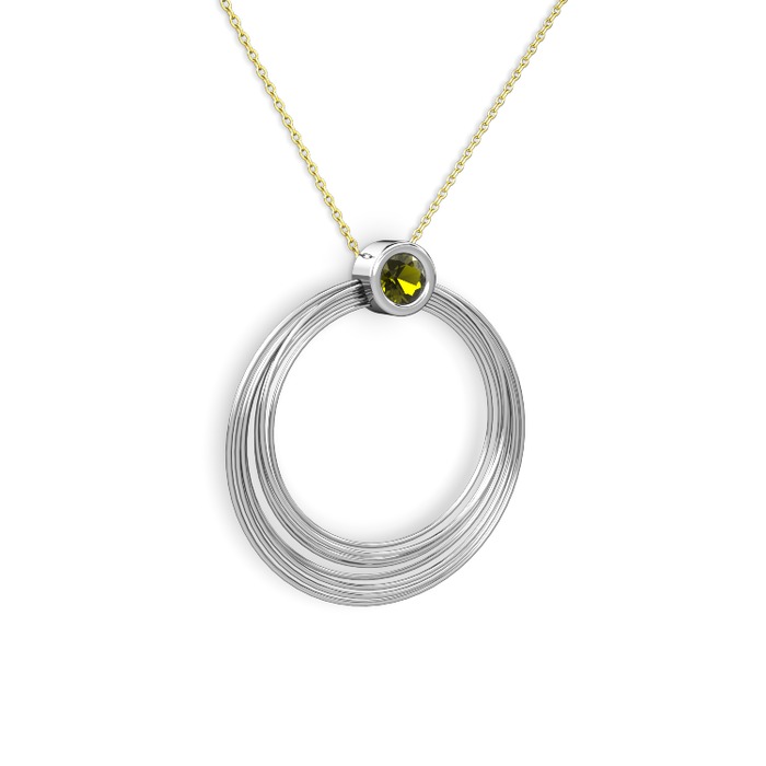 Peridot 8 ayar beyaz altın kolye (40 cm altın rolo zincir)