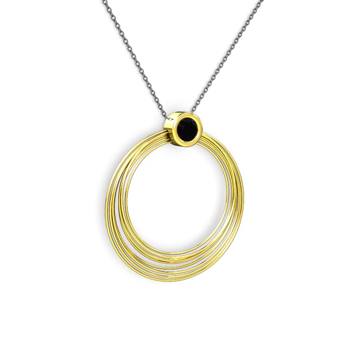 Siyah zirkon 18 ayar altın kolye (40 cm gümüş rolo zincir)