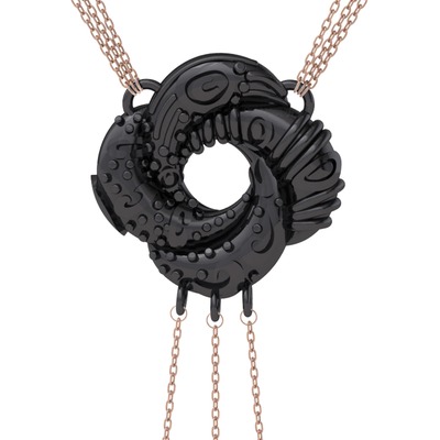 Cezayir Aşk Düğümü Kolye - 925 ayar siyah rodyum kaplama gümüş kolye (170 cm gümüş rolo zincir)