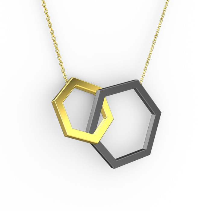 925 ayar siyah rodyum kaplama gümüş kolye (40 cm altın rolo zincir)
