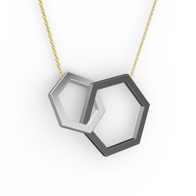 925 ayar siyah rodyum kaplama gümüş kolye (40 cm altın rolo zincir)