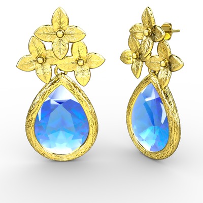 Akuamarin 925 ayar altın kaplama gümüş küpe