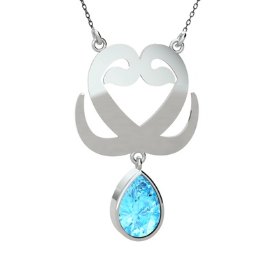 Akuamarin 14 ayar beyaz altın kolye (40 cm gümüş rolo zincir)