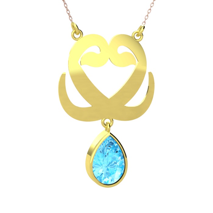 Akuamarin 8 ayar altın kolye (40 cm rose altın rolo zincir)