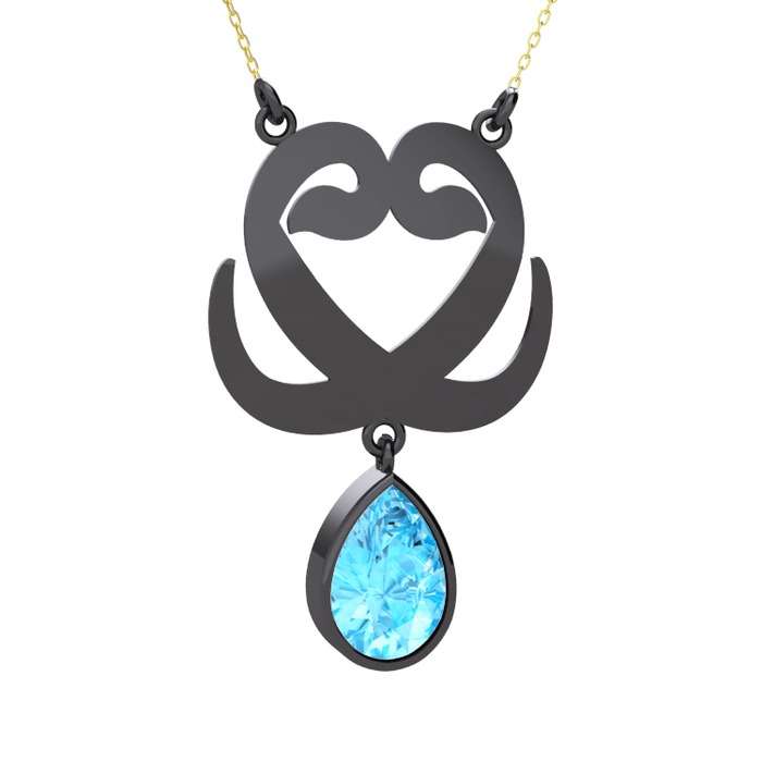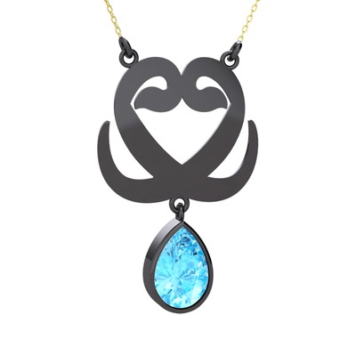 Akuamarin 925 ayar siyah rodyum kaplama gümüş kolye (40 cm altın rolo zincir)