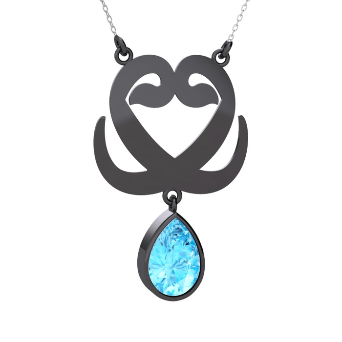 Akuamarin 925 ayar siyah rodyum kaplama gümüş kolye (40 cm gümüş rolo zincir)
