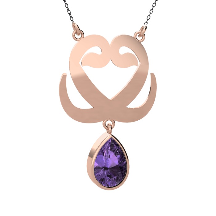 Ametist 18 ayar rose altın kolye (40 cm gümüş rolo zincir)