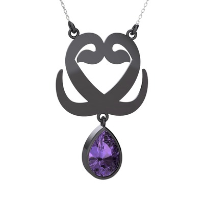 Ametist 925 ayar siyah rodyum kaplama gümüş kolye (40 cm beyaz altın rolo zincir)