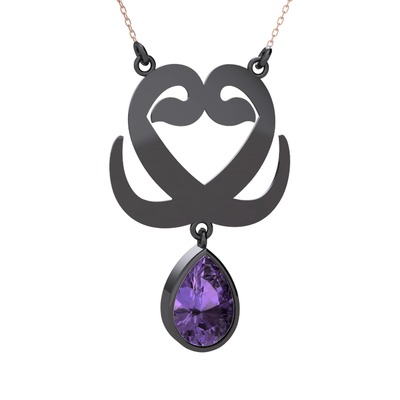 Ametist 925 ayar siyah rodyum kaplama gümüş kolye (40 cm gümüş rolo zincir)