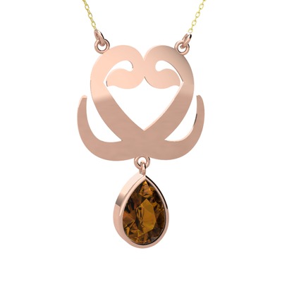 Dumanlı kuvars 18 ayar rose altın kolye (40 cm altın rolo zincir)